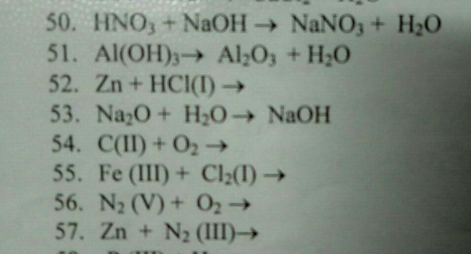 В 50 не надо, в 51 в начале поставь 2, в 52 получается Н2 и цинк хлор2 перед Аш хлор 2,в 53 перед натрий гидроксидом 2, в 54 получается СО2, а дальше не знаю