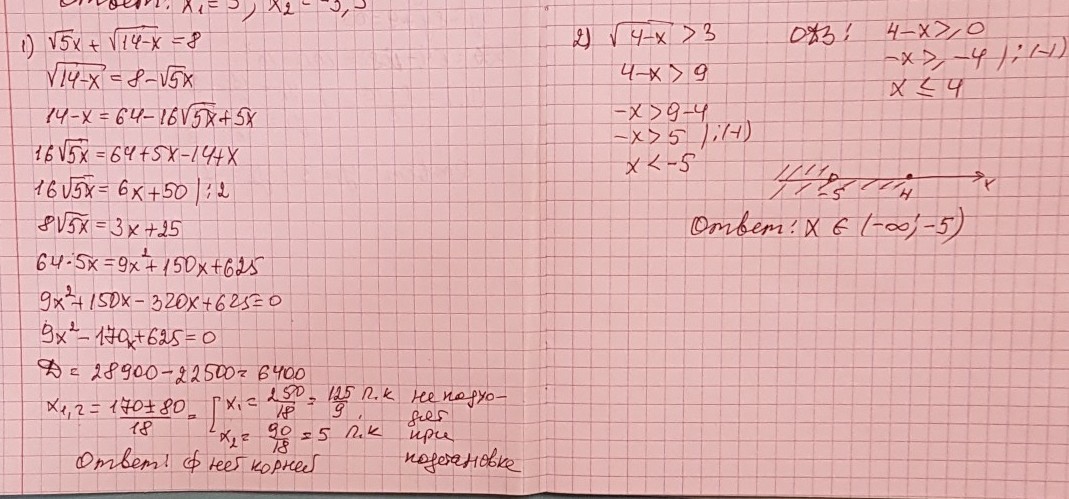 Помогите пожалуйста, даю 35 баллов: Решите уравнение, 1)√5x+√14-x=8
