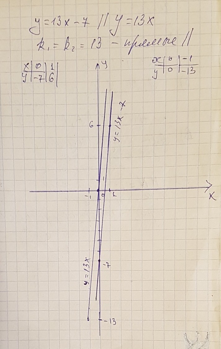 задайте формулой линейную функцию график которой параллелен прямой y=13x-7 и проходит через начало координат желательно с риссунком