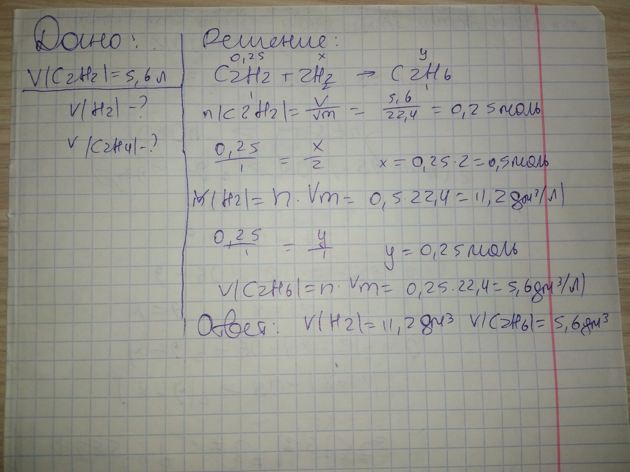 вычислить объем водорода который может присоеденить ацетилен объемом 5.6 л и определить объем продукта рэакции