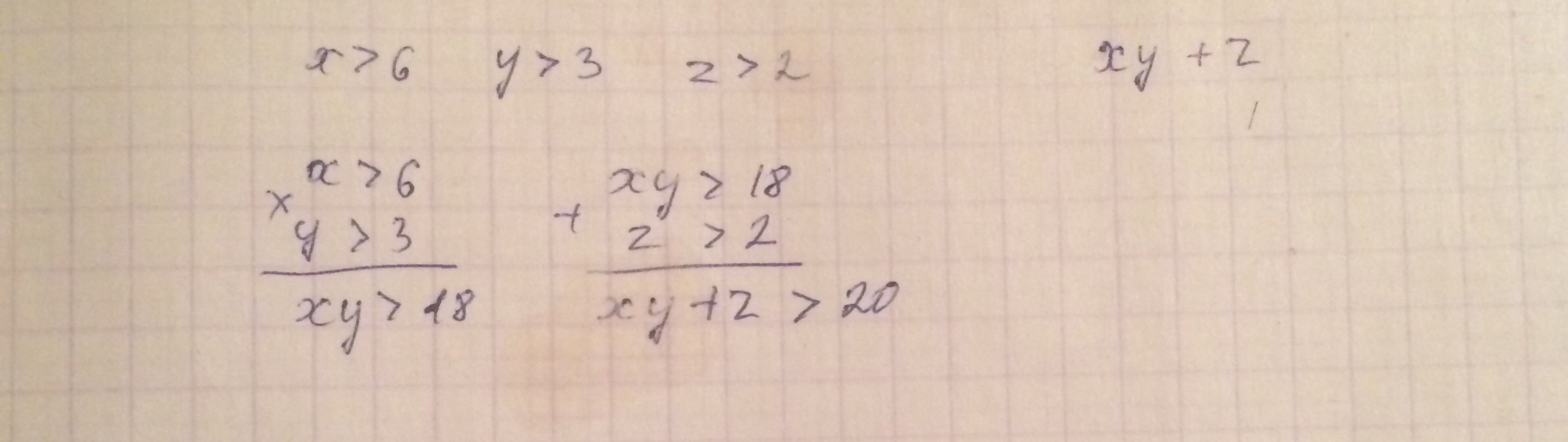 Умножаем неравенство х>6 и >3.