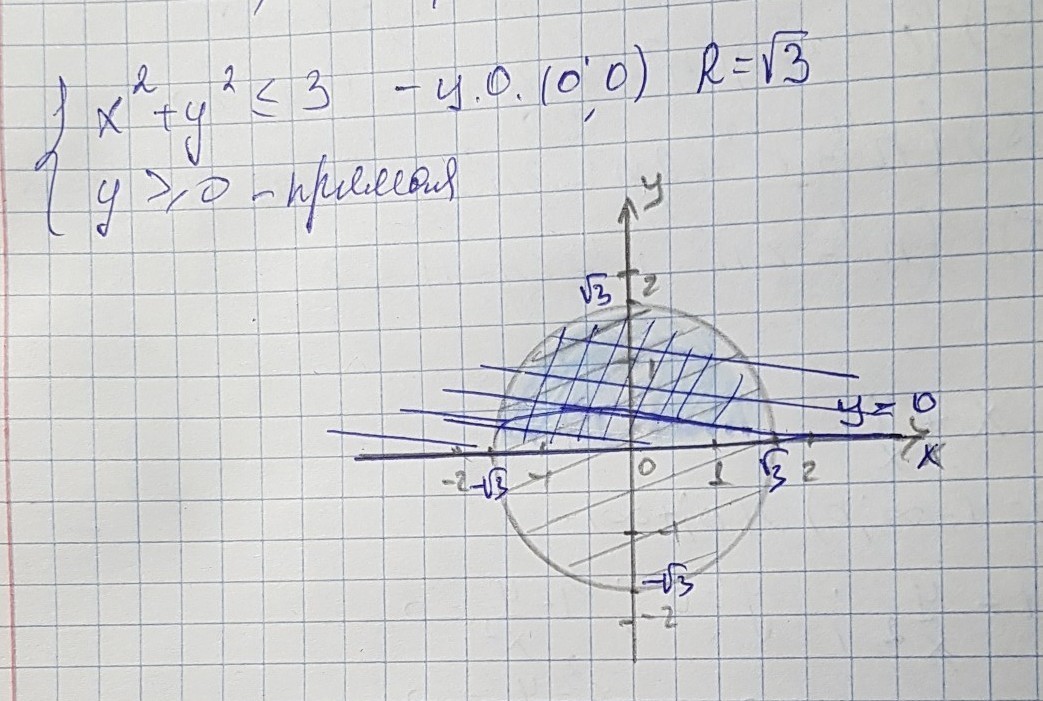 на координатной плоскости покажите штриховкой штриховкой множество точек, заданных системой неравенств х^2+у^2≤9