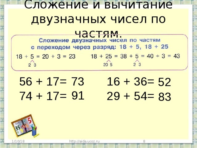Помогите пожалуйста придумать задание на порозрядное сложение двухзначных чисел с переходом через разряд