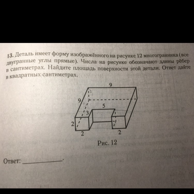 Площадь верхней части: 9*9-5*3=81-15=66.