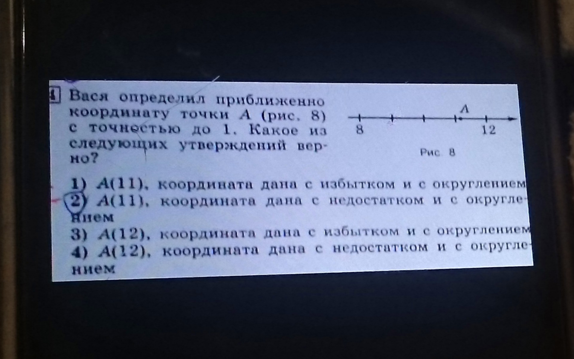 правильный ответ 1, т.к. на координате отмечено немного дальше 11, и точка А расположена ближе к 11, чем к 12, поэтому округляем до 11