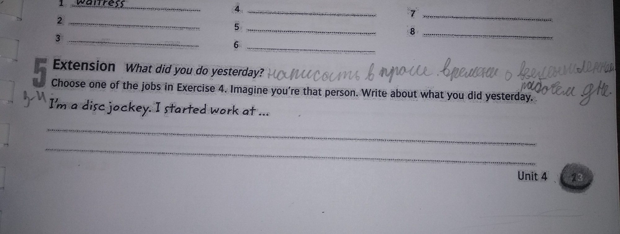 I'm a waitress, I started work at 15:00, right after school. I brought menus, served meals and cleared tables. The job is exhausting, I came home late and very tired. I went to sleep right away.