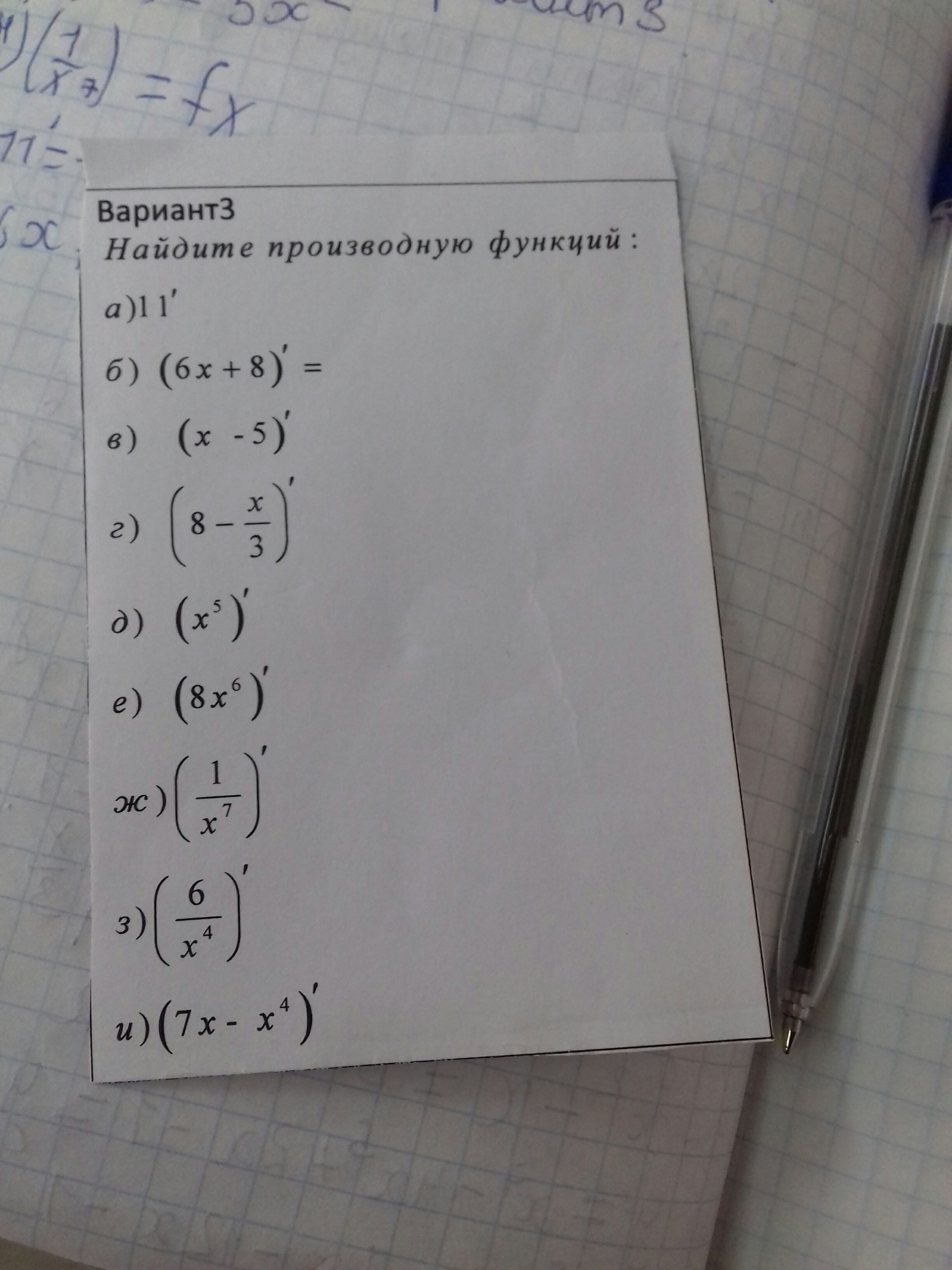 d) (8-x/3)'=8'-(x/3)'=-(3(x)'-(3)'x/9)=-(3/9)=-(1/3)