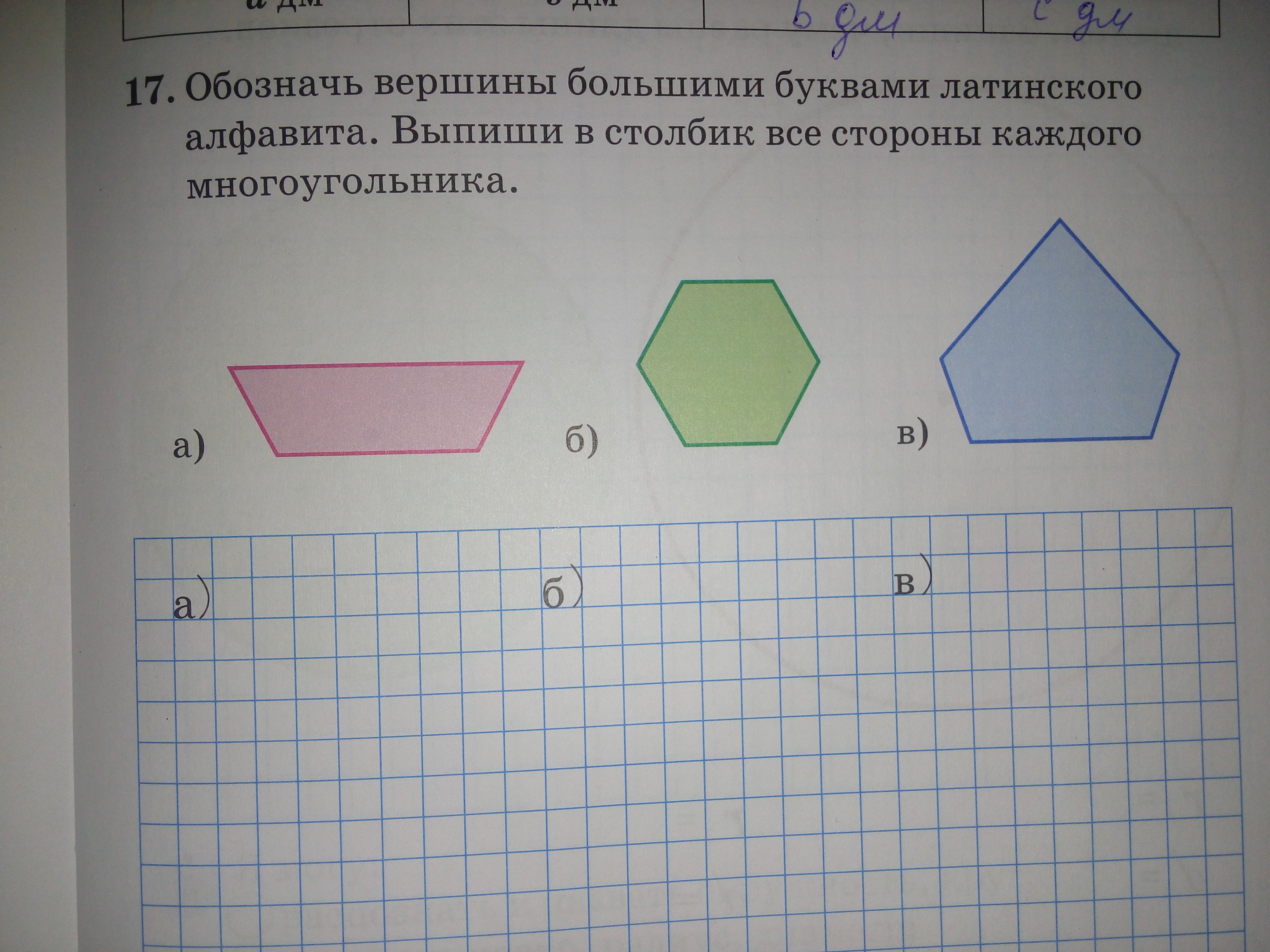 Обозначим 1 многоугольник как а в с Е а в 1 сторона в с вторая сторона с Е третья сторона е а четвёртая сторона обозначим вторую фигуру буквами а в с Е м X а в Первая сторона в с вторая сторона с е третья сторона Е м четвёртая сторона м X Пятая сторона X А 6 сторона обозначим третью фигуру буквами а в с Е м а в 1 сторона в с вторая сторона С Е третья сторона Е м четвёртая сторона м а 5 сторона вот и всё