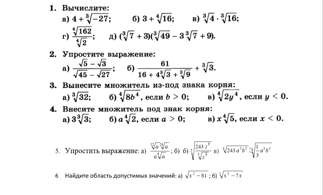 4b); ; sqrt[5]{frac{243z^6}{sqrt[3]{z^9}}}=sqrt[5]{frac{3^5z^6}{z^3}}=3sqrt[5]{z^3}\\4c); ; sqrt[4]{243a^5b^5}cdot sqrt[4]{frac{1}{3}a^3b^3}=sqrt[4]{3^5a^5b^5cdot 3^{-1}a^3b^3}=sqrt[4]{3^4a^8b^8}=3a^2b^2\\5a); ; y=sqrt{x^2-81}; ,\\ODZ:; ; x^2-81geq 0\\(x-9)(x+9)geq 0quad +++[-9, ]---[, 9, ]+++\\xin [-9,9, ]\\5b); ; y=sqrt[5]{x^2-7x}; ,; quad  ODZ:; ; xin (-infty ,+infty )