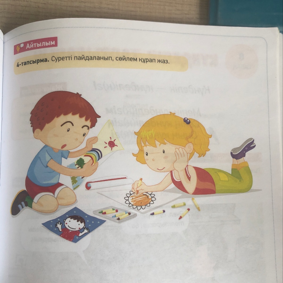 Балалар сүретте сурет салады.Əна жақта түрлері-түстер бар.Олар қызыл,жасыл,қара,ақ,көк.Олар да жақсы сүреттер.