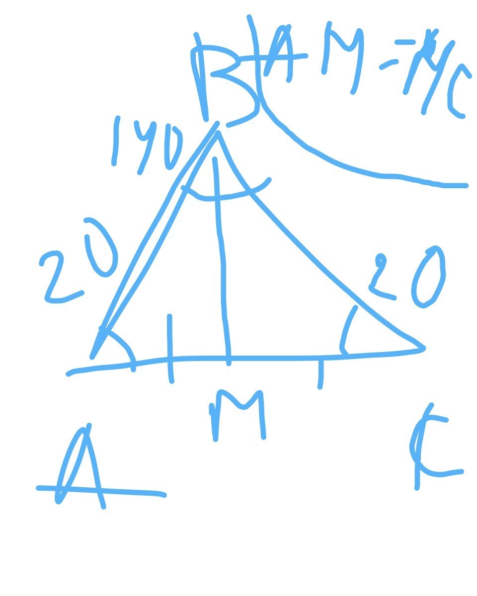 Тк am=MC треуг равнобедренныйуглы при основании равны 180 сумма углов 180-30+30=140, в =140