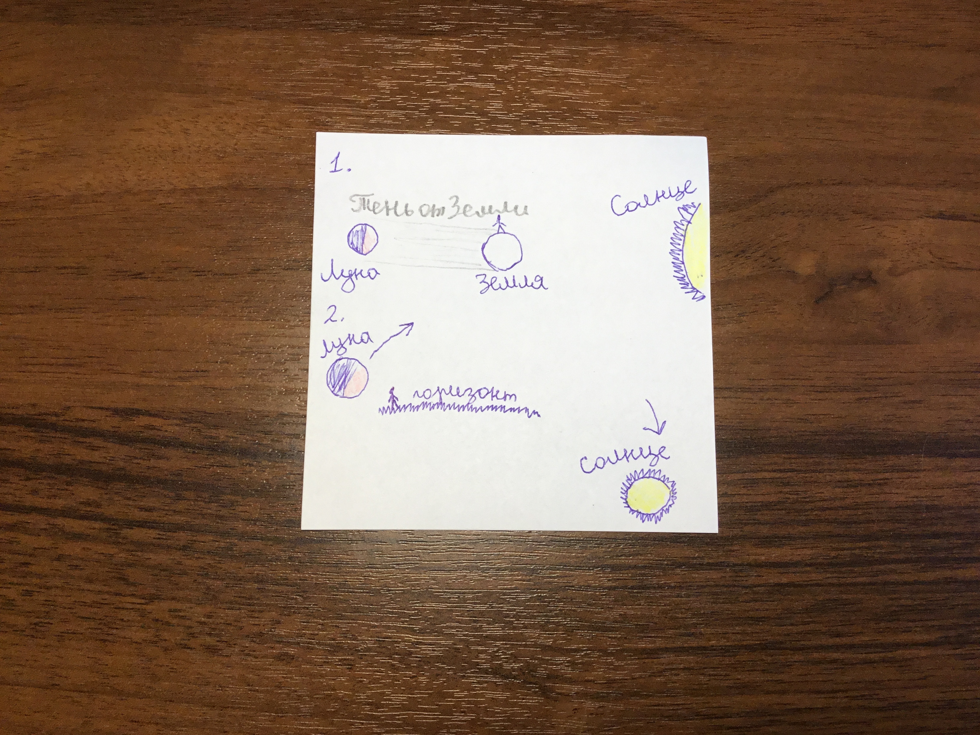 Если Солнце с одной стороны Земли, то при лунном затмении Луна будет с другой стороны, то есть в 180° от него. Луна движется в том же направлении в течении суток, что и Солнце, а значит, если Луна восходит, то Солнце соответственно заходит за горизонт, а значит время наблюдения - вечер.