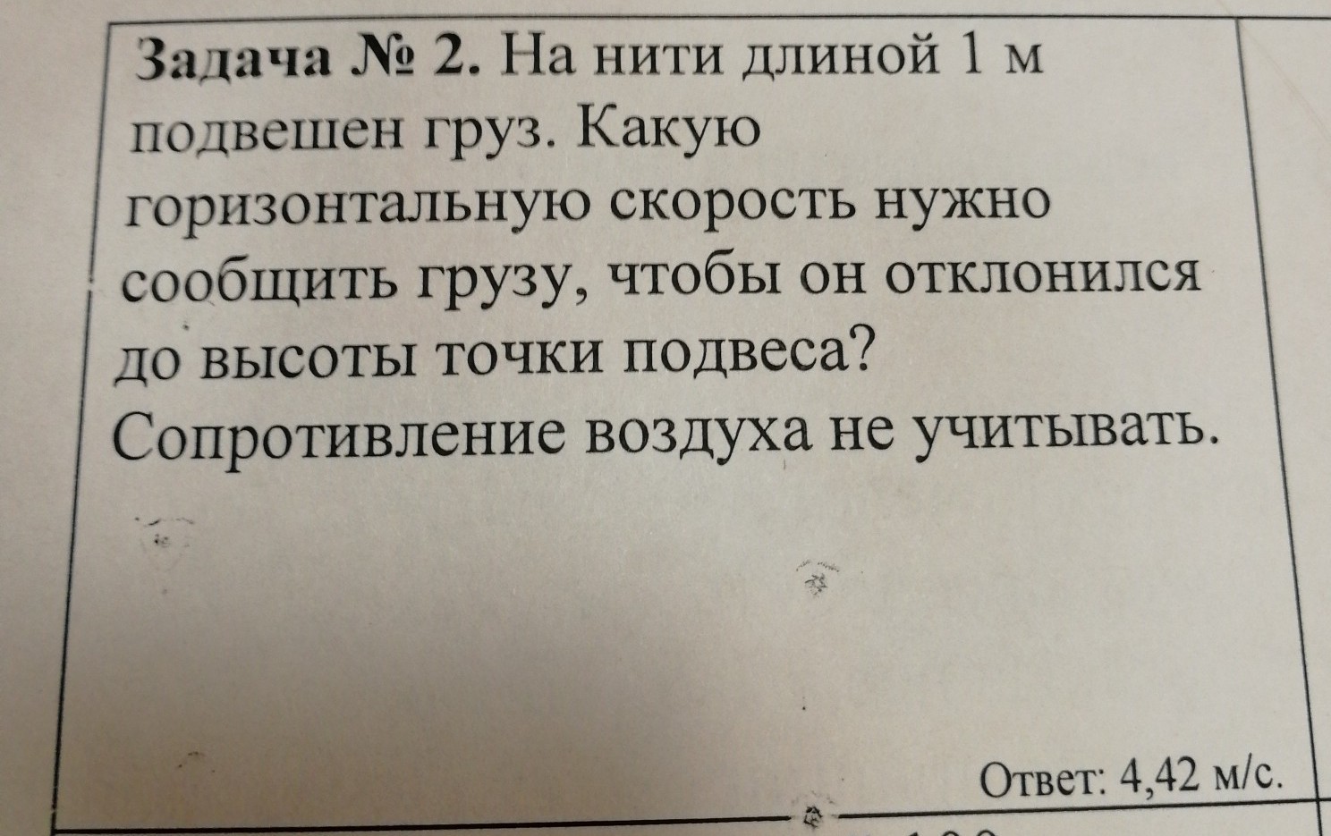 v=корень из 2gh=конень 9.8*2*1=4,42 м/с