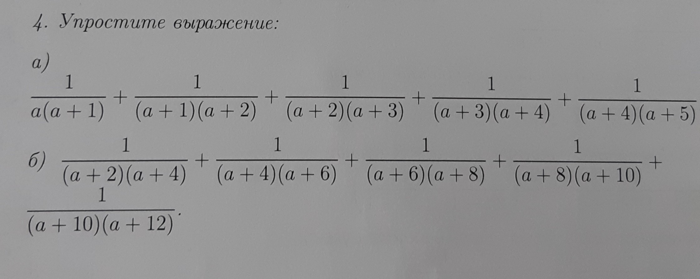 Смотрите допустим . а) 1 / а(а+1) упрощенно до 1/ 2а+1