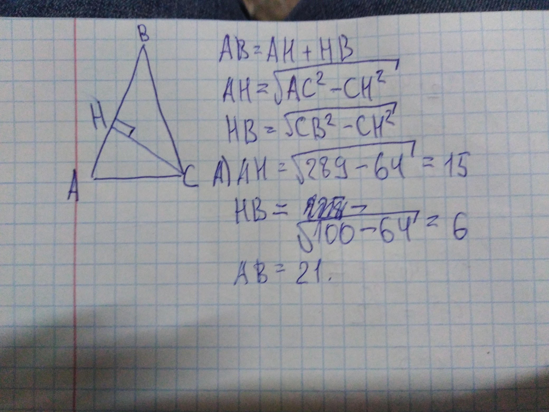 В треугольнике АВС высота СН делит сторону АВ на отрезки АН и ВН. Нйдите: