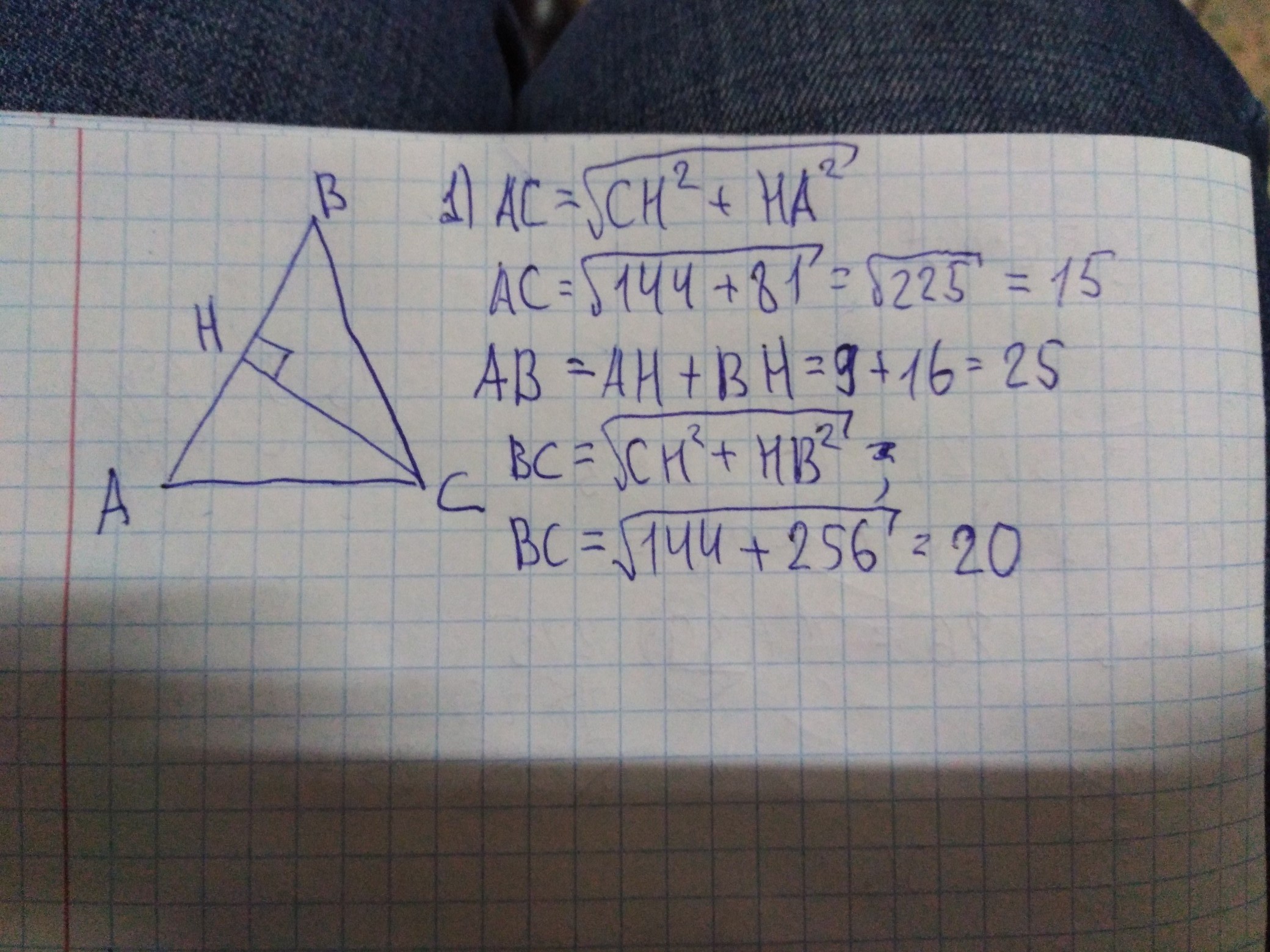 В) АС=20дм, ВС=15дм, СН=12дм.