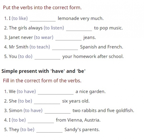 1 like 2 listen 3 wears 4 teaches 5 do