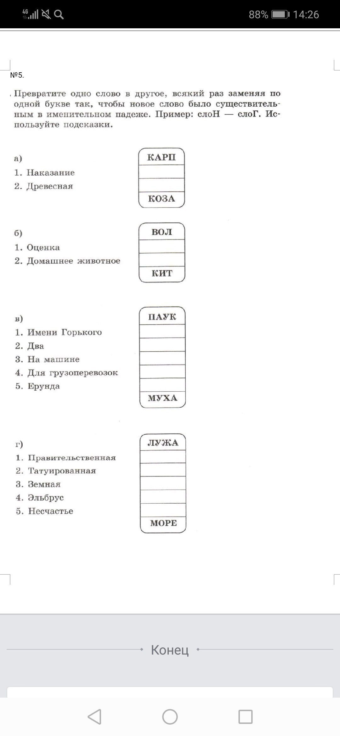 в) Паук - Парк - Пара - Фара - Фура - Мура - Муха
