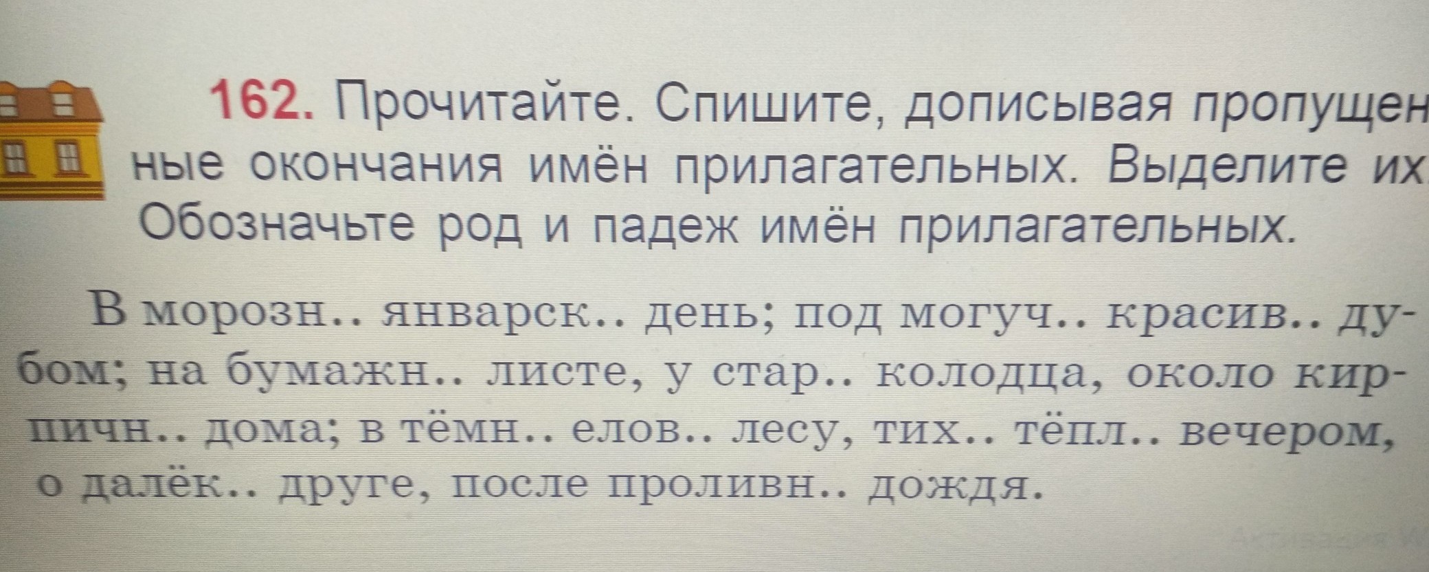 прочитайте.Спишите,дописывая пропущеныя окончания имен прилагательных.Выдилете их .Обозначте род и падкж имен прилагательных