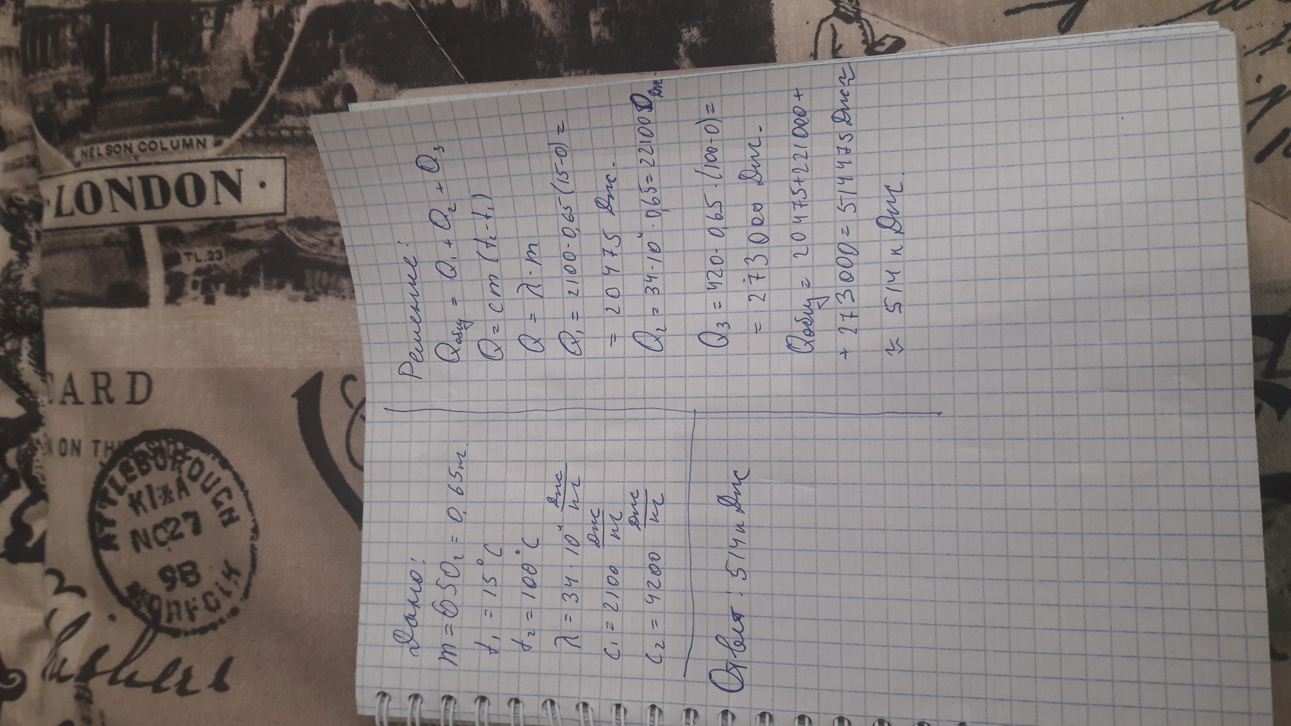 m = 650г=0.65кг Qобщ =Q1 + Q2 + Q3
