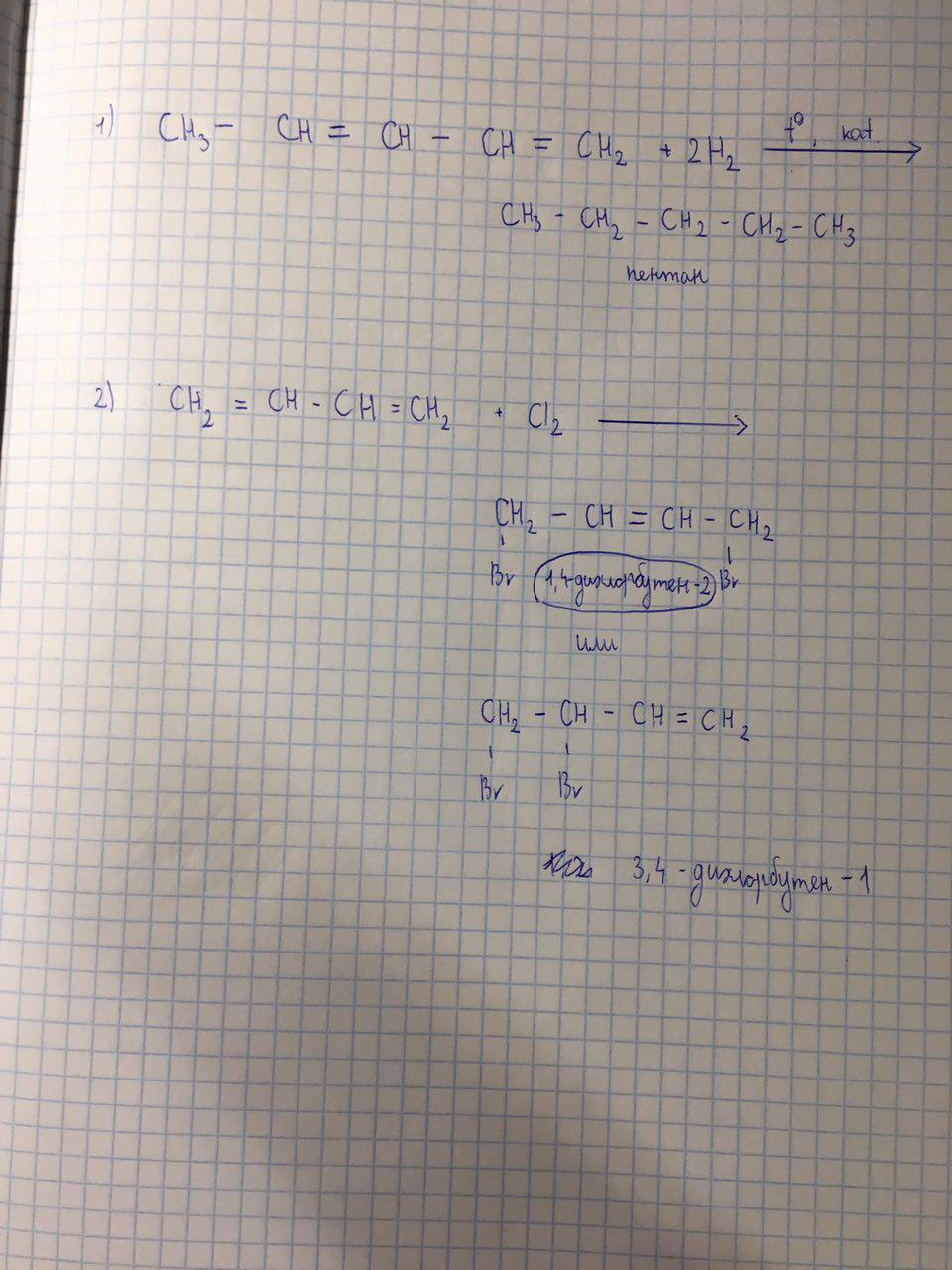 Во второй реакции возможны 2 продукта выхода. 1,4-дихлорбутен-2 и 3,4-дихлорбутен-1