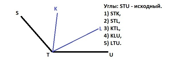 даю 34 балла Начерти угол STU и раздели его лучами TK И TL на части.запиши все полученные углы.помогите плиииииз