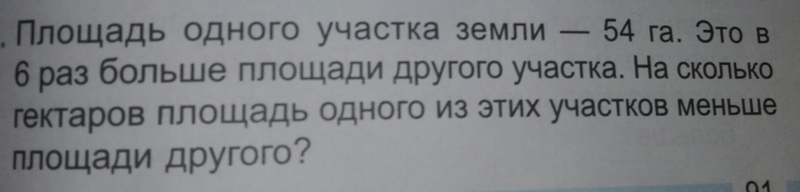 2)54-9=45 (га) - на столько га площадь одного участка меньше другого.