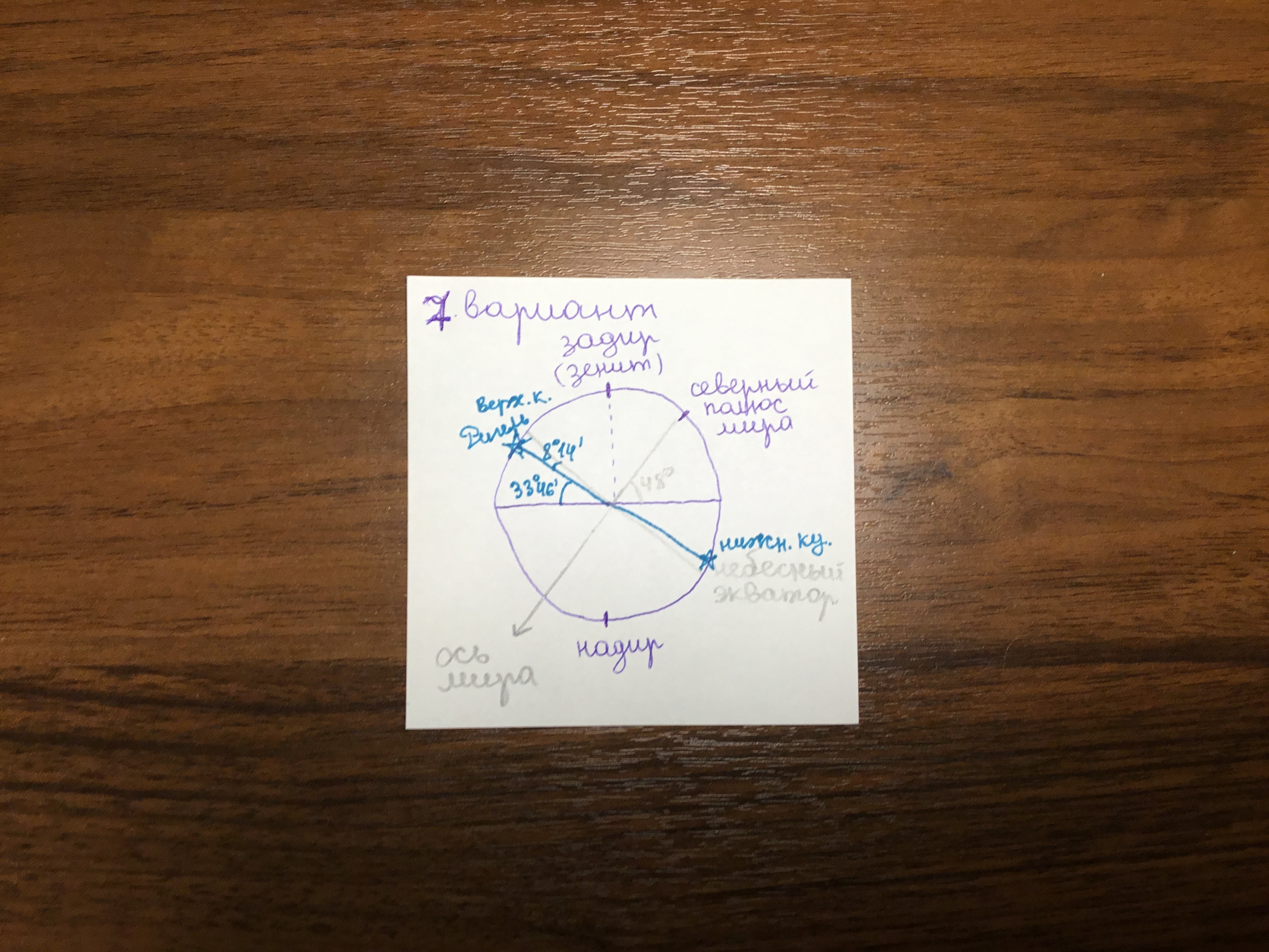 h = 90° - 48° + (-8°14) = 33°46 минут