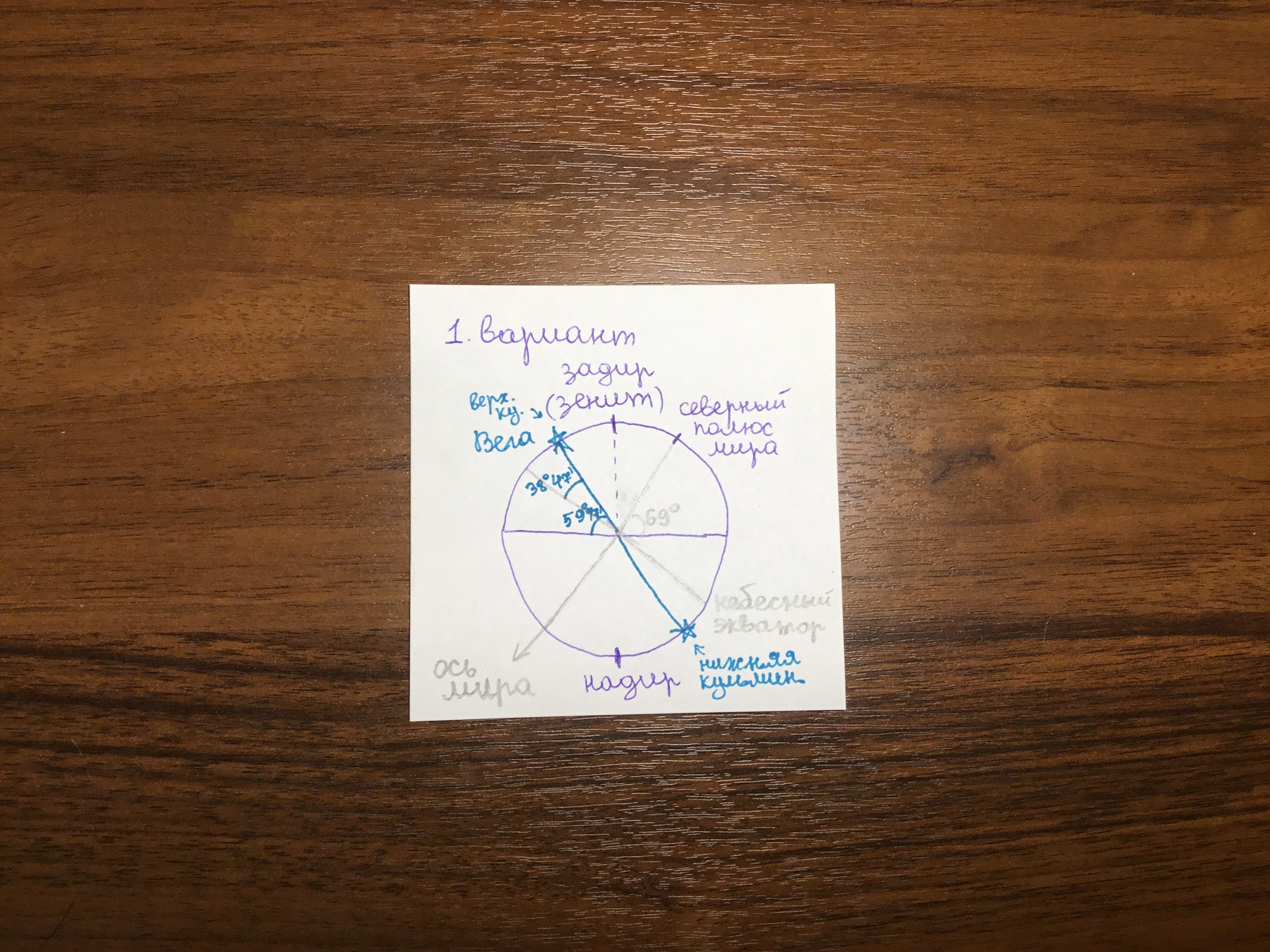 h = 90° - 69° + 38°47 = 59°47 минут