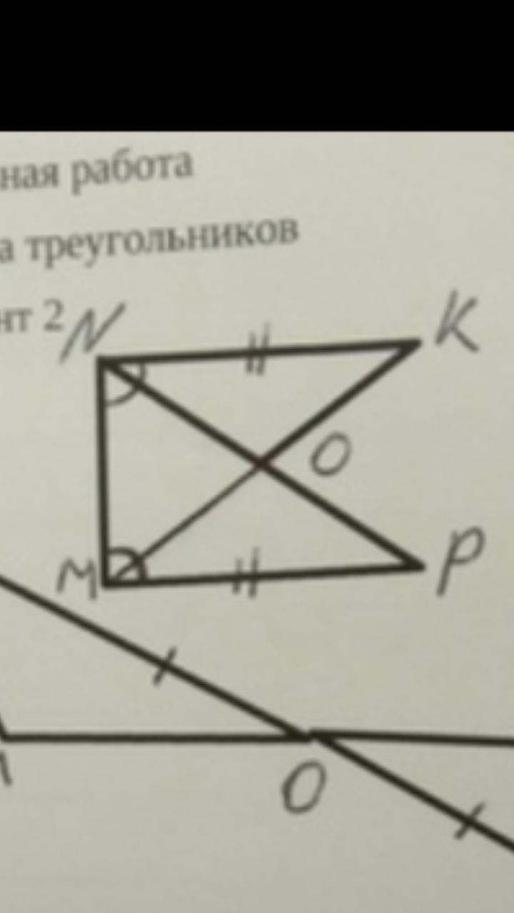 Треугольники NOK и MOP вертикальные, раз углы KNM=углуNMP, то значит что эти треугольники равны а и значит что KM=NP