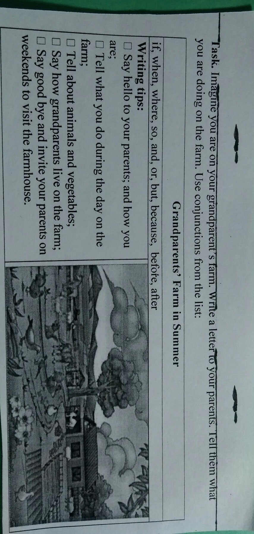 Hello mom and dad, I hope you doing well. I’m having a lot of fun here with grandma and grandpa. I’m helping them to feed the animals , I like to play with them specially with the little goats. I also learned how to ride a horse , not perfect, but I’m getting better. I love grandmas cooking, everything we eat, has grown on this farm , it’s incredible! I really love it here , although I miss you and cannot wait till you two come and join us here .