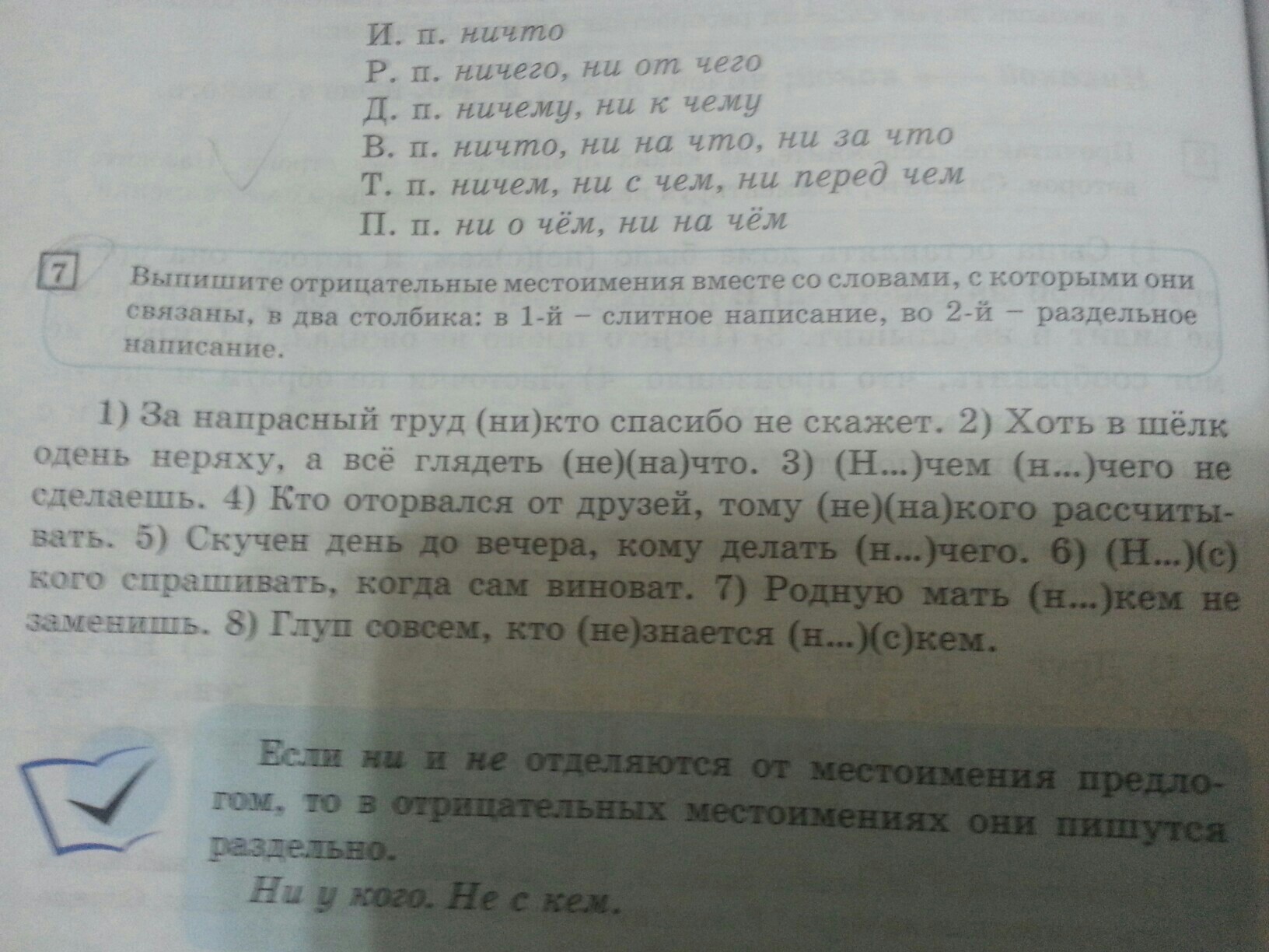 7)никем 8)не знается, ни с кем