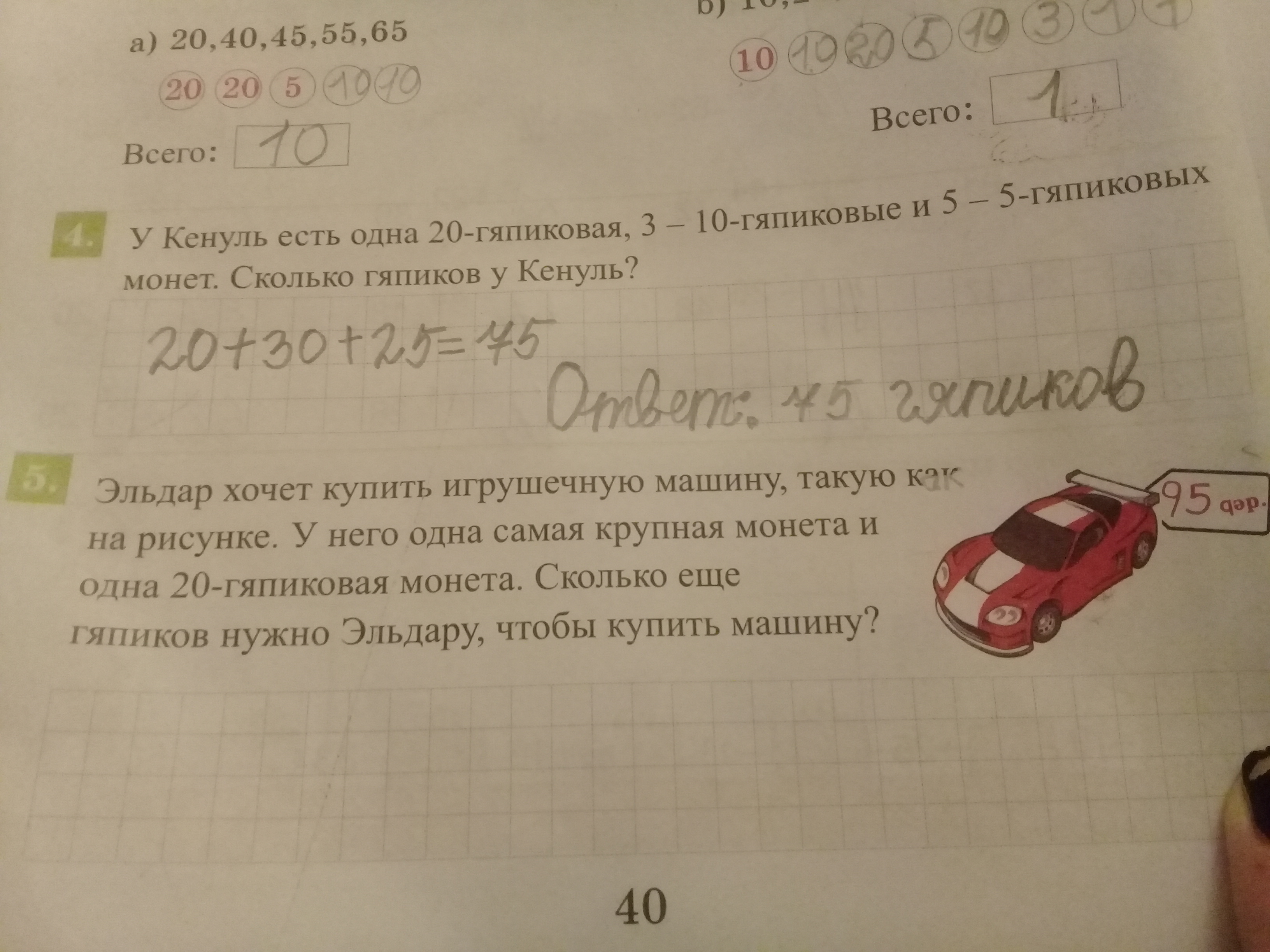 95-20=75гяпиков нужно, чтобы купить машину