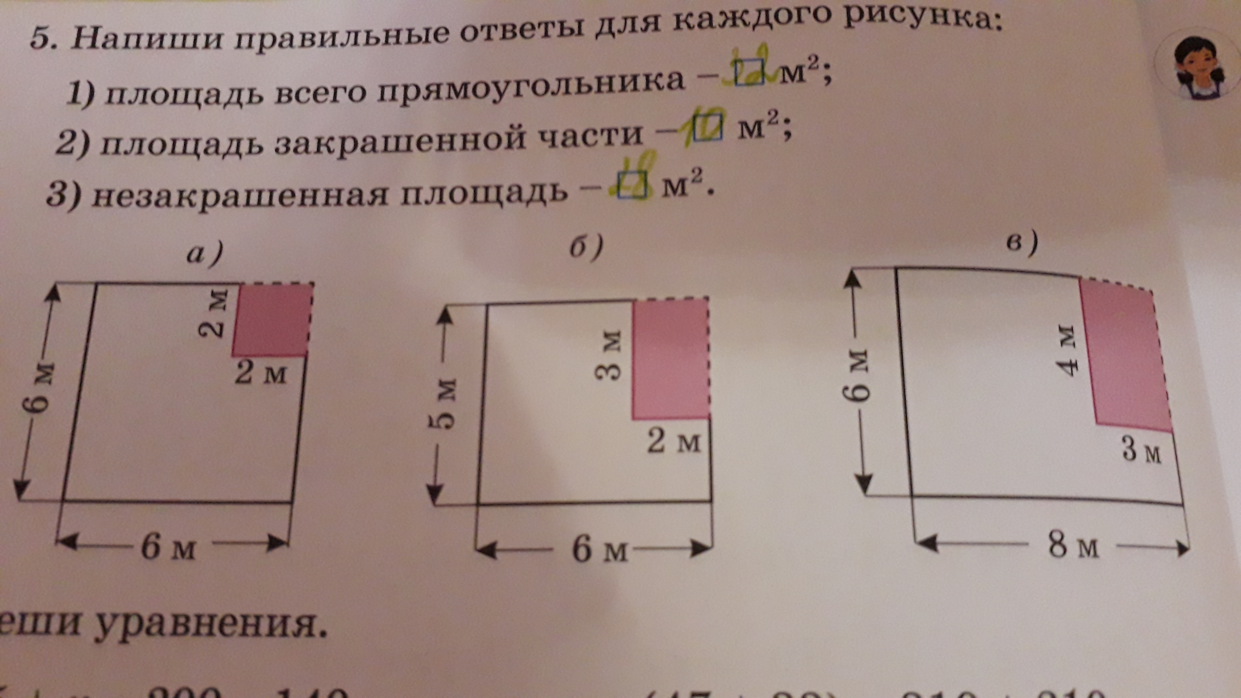 а) площадь всего прямоугольника 6*6=36 площадь измеряется в квадратных метрах т.е. 36 м2
