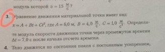 V=(A+Bt+Ct²)'=B+2*C*t=4+2*1*7=18 м/с