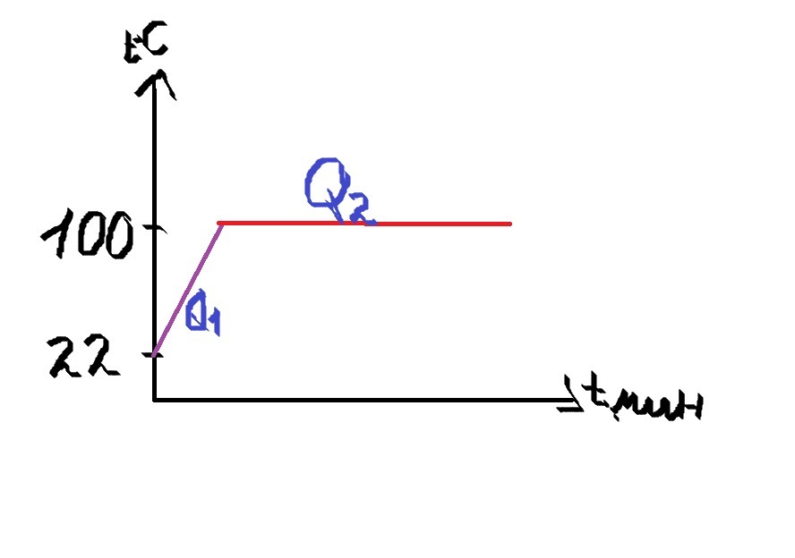 Дано: m=0.8 кг, t₁=22°C, t₂=100°С, с=4200 Дж/кг*°С, L=2,3*10⁶ Дж/кг