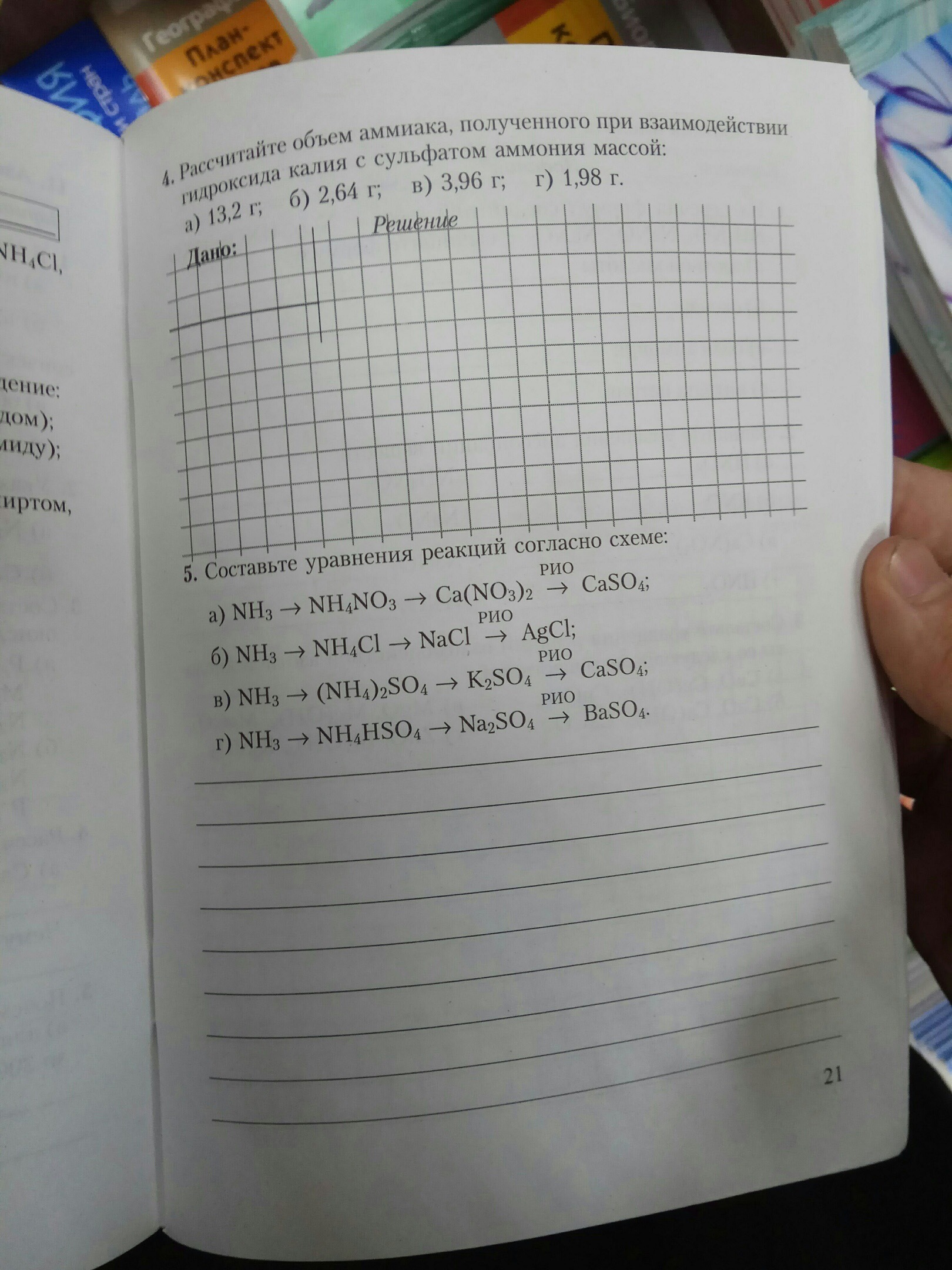 (по уравнению переходим на аммиак, учитывая коэффициент 2)-не записывать
