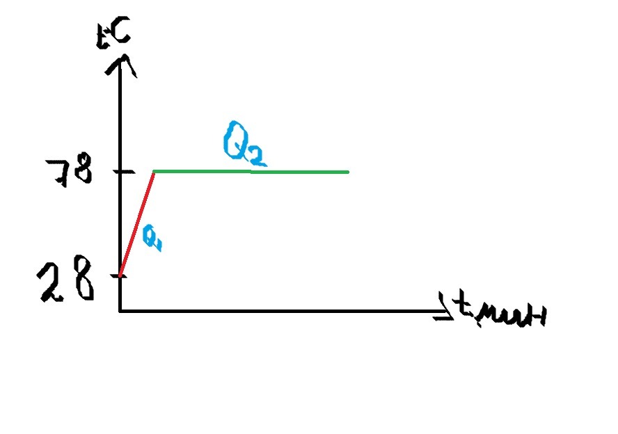 Дано: m=200 г, t₁=28°С, t₂=78°С, L=0,9*10⁶ Дж/кг, с=2500 Дж/кг*°С