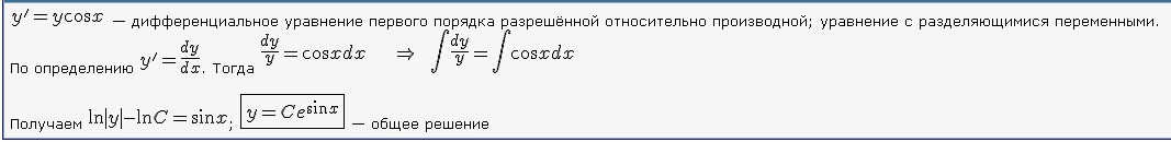 Найти общее решение дифференциального уровнения методом разделения переменных: