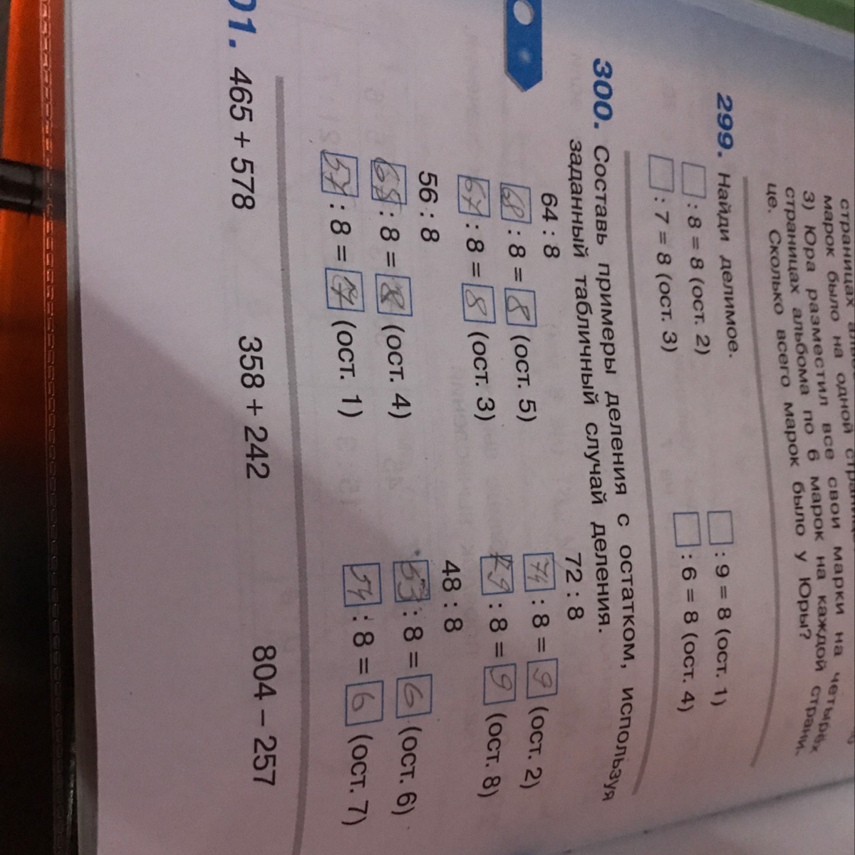 Составь примеры деления с остатком используя заданный табличный случай деления,подскажите правильно решили или нет?