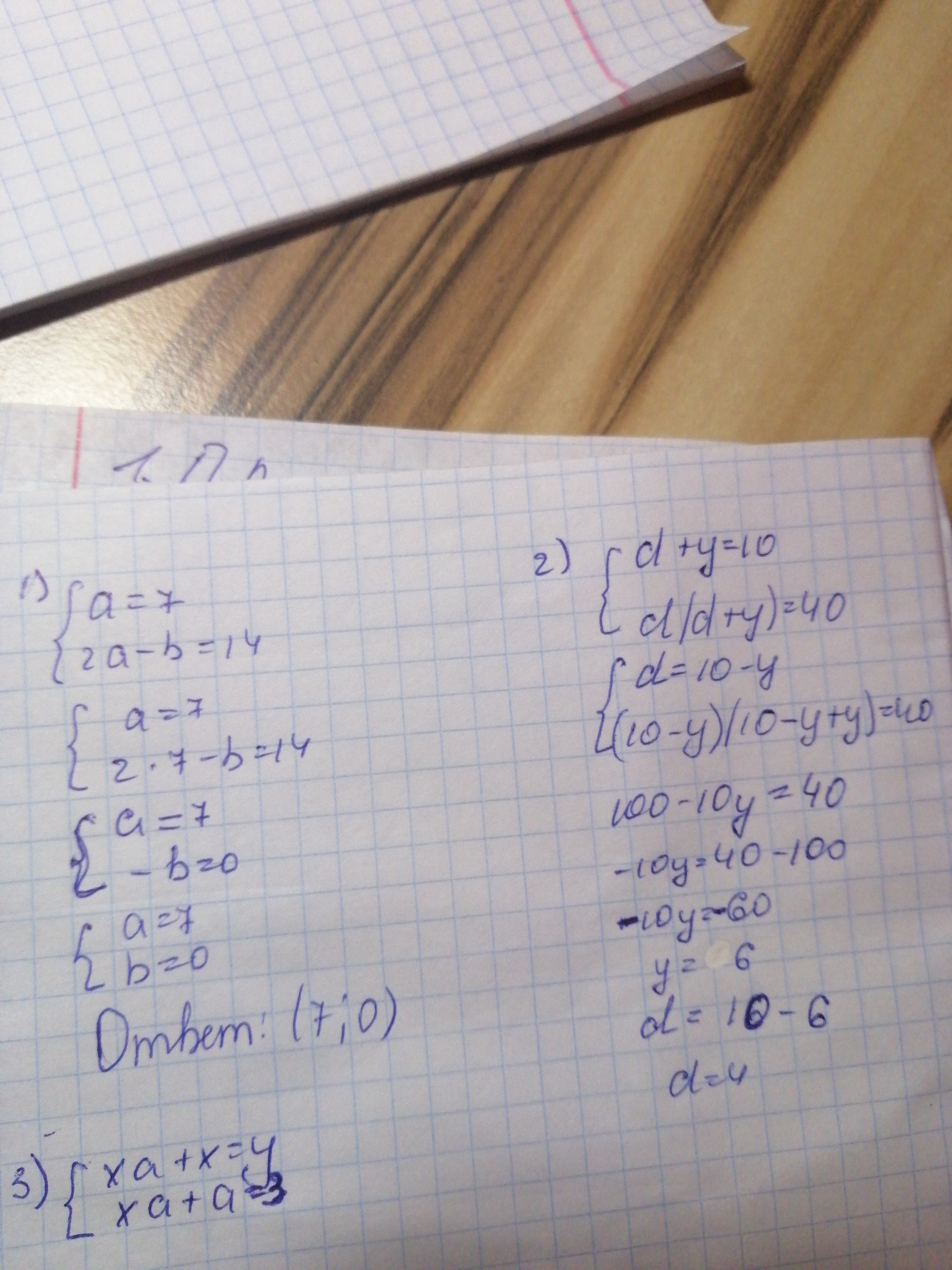 1) Так как a=7, то b=2a-14=2*7-14=0.