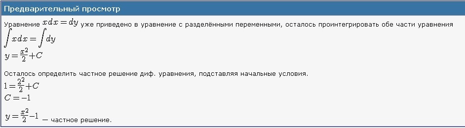 Найти частное решение дифференциальных уравнений методом разделения переменных :