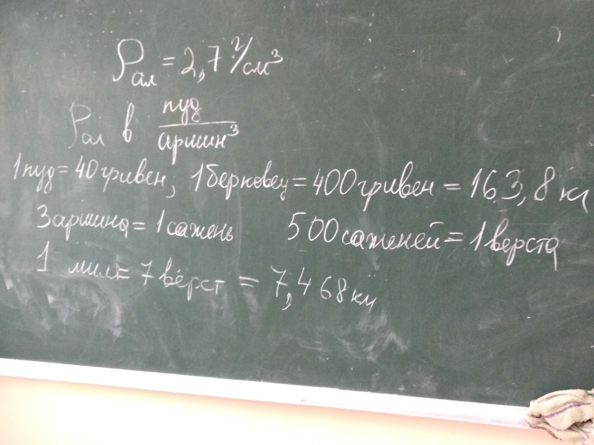 Дано: ро(ал)=2.7г/см³, выразить в пуд/арш³, используя данные по условию