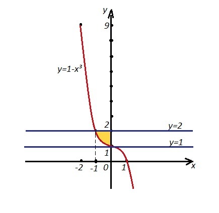 y=1-x³ перевёрнутая кубическая парабола, сдвинутая вдоль оси ОУ вверх на 1 единицу.