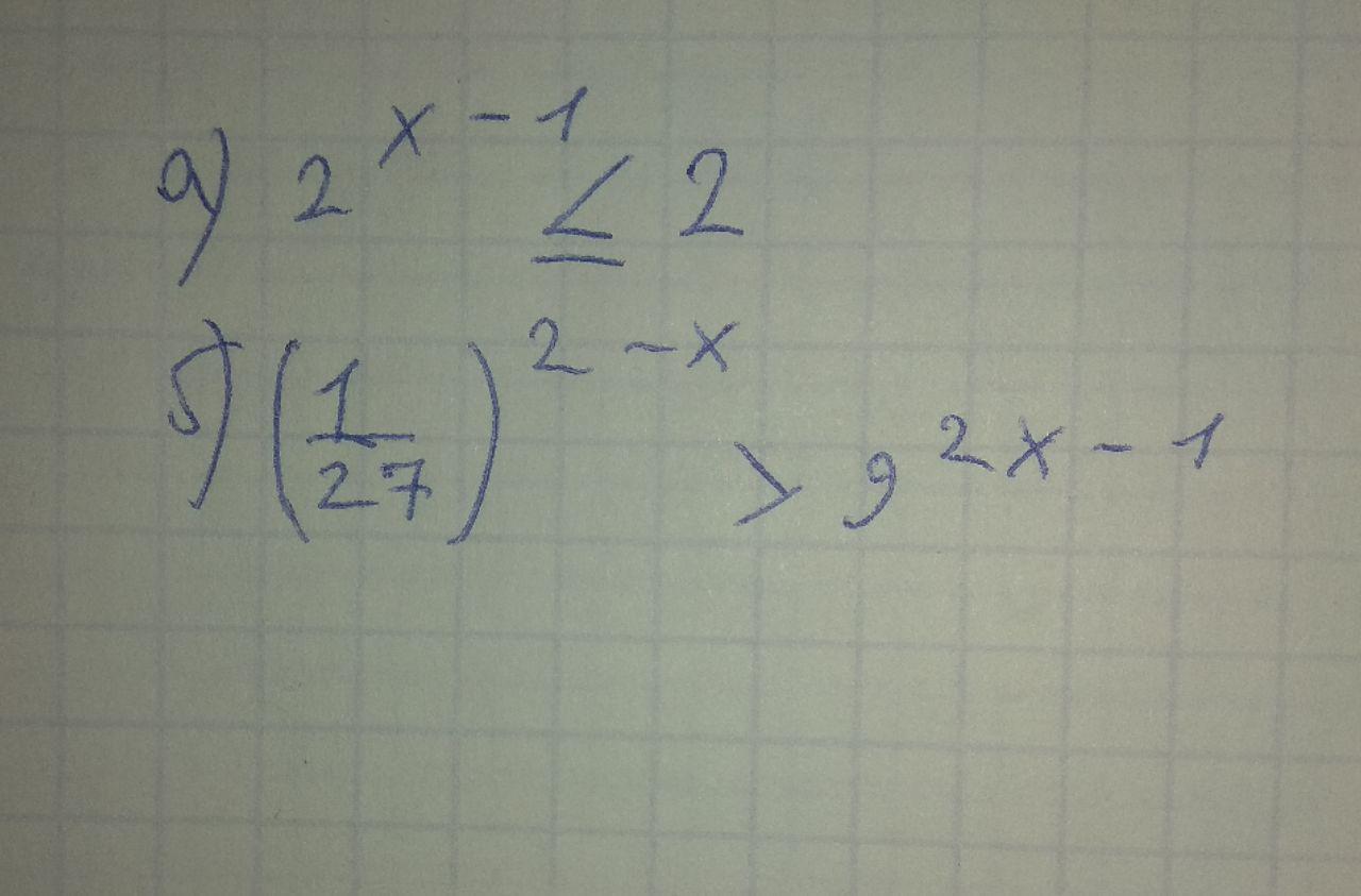 б)(1/27)^(2-х) > 9^(2х-1). Приведем обе части к одному основанию: