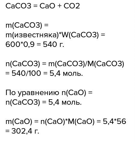Вычислите массу оксида кальция при разложении 60 г. образца СаСо3 содержащего 5% примессей