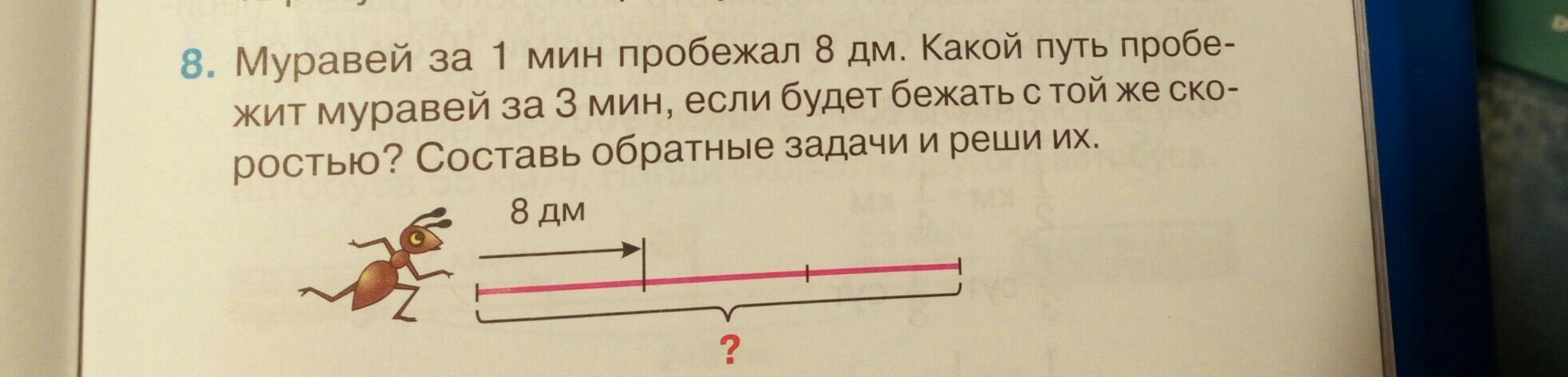 Муравей за 3 мин. пробежал 24 дм. Какой путь пробежит муравей за 1 мин. если будет бежать с той же скоростью?