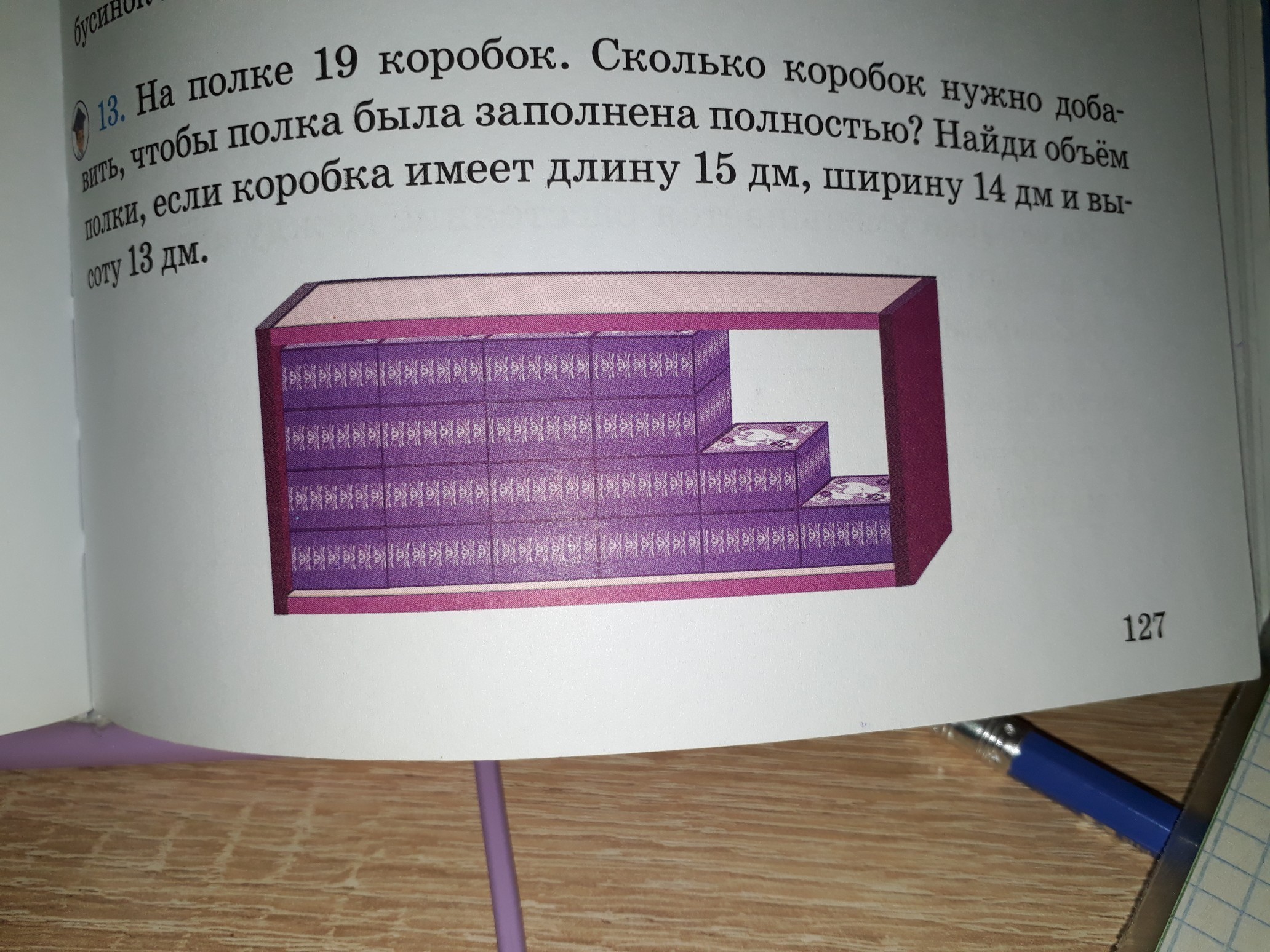 с = 13*4=52 дм - высота полки равна сумме высот коробок в одном столбике