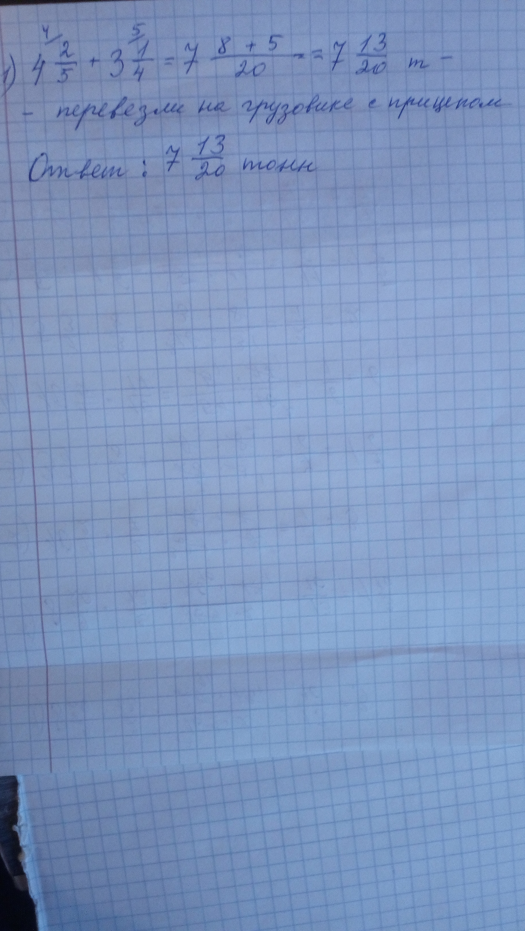 в кузове грузовика перевезли 4 целых 2/5 и каменного угля а в прицепе 3целых 1/4 т сколько всего тонн угля перевезли на грузовике с прицепом МОЖНО ФОТО! И МОЖНО ПОЛНОСТЬЮ!!!!!! ПРОШУ