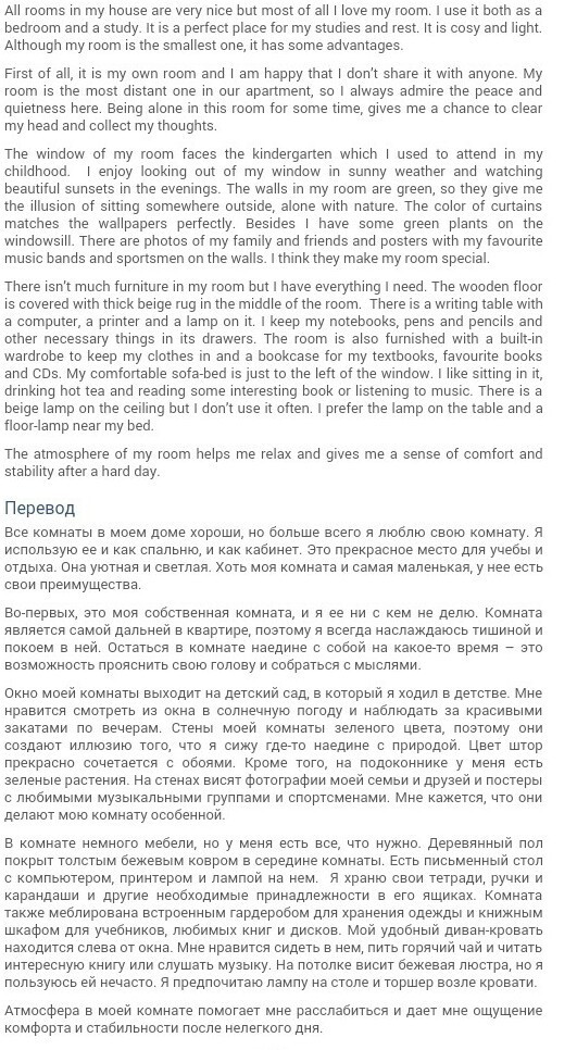 Нужно описать свою комнату на английском языке (для девочки).4 класс